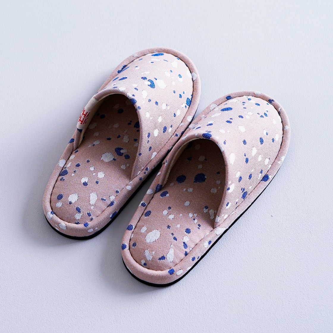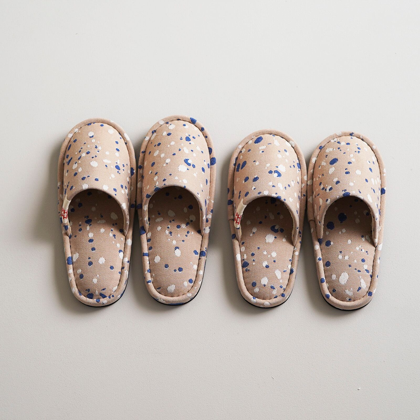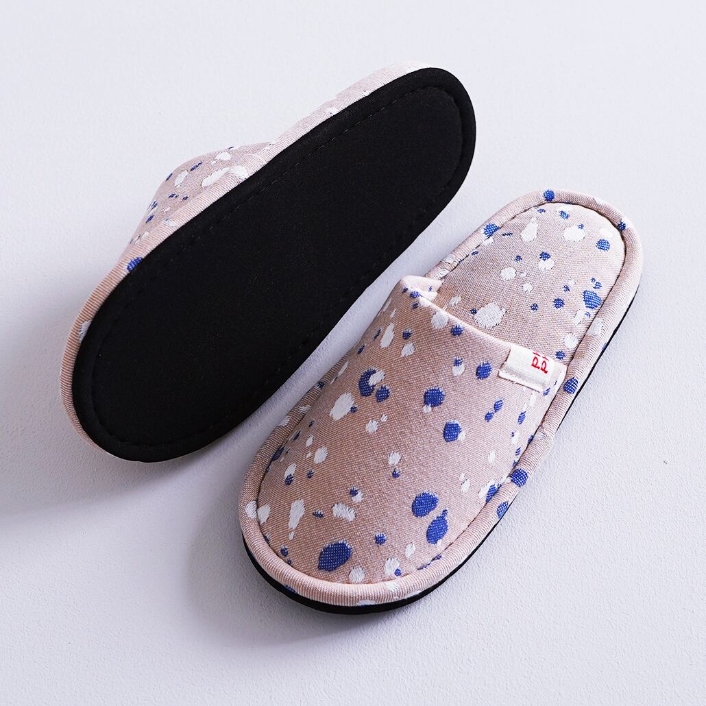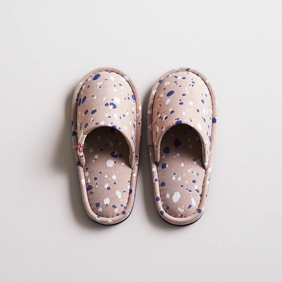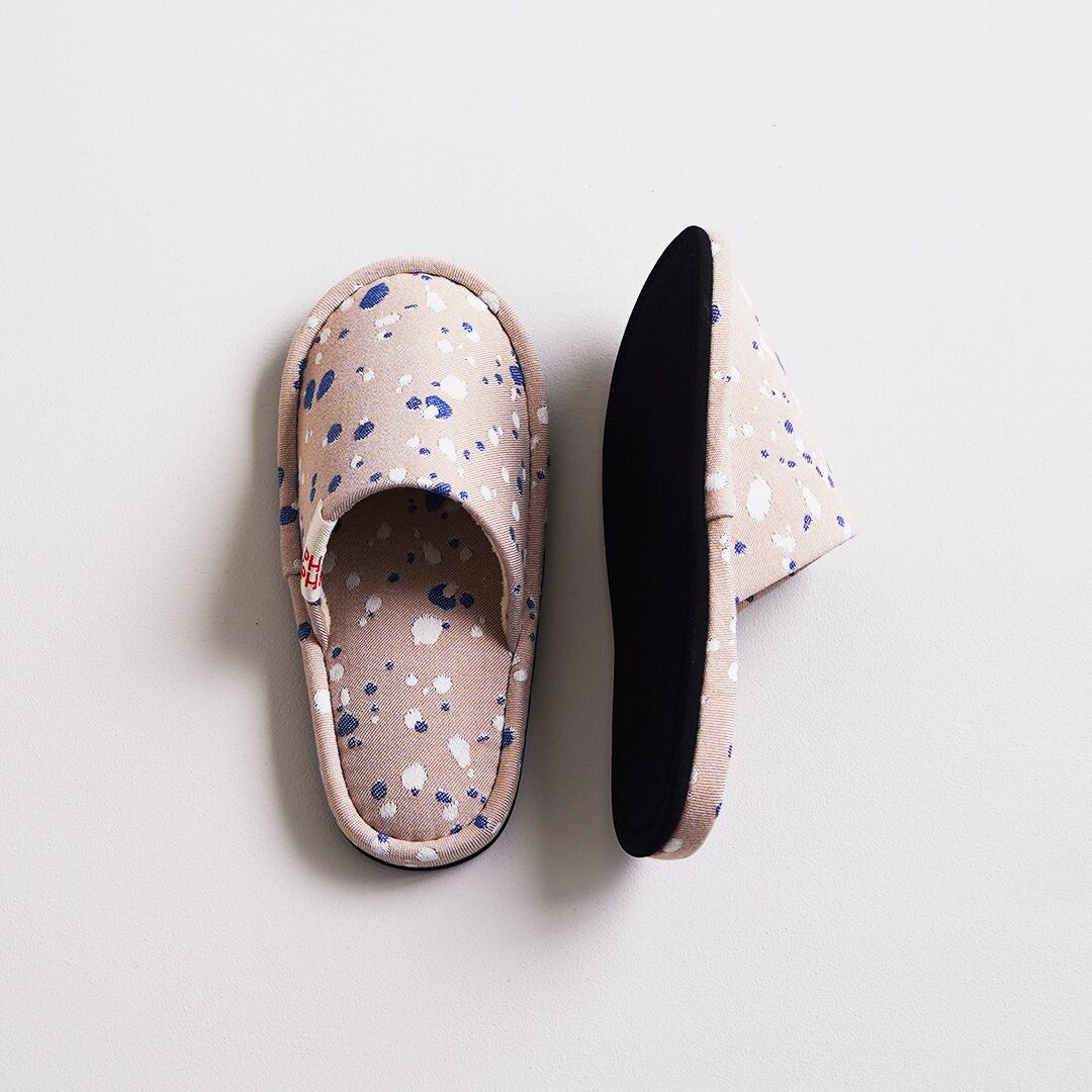 オリジナルファブリック「SHIZUKU」を仕立てたスリッパ。