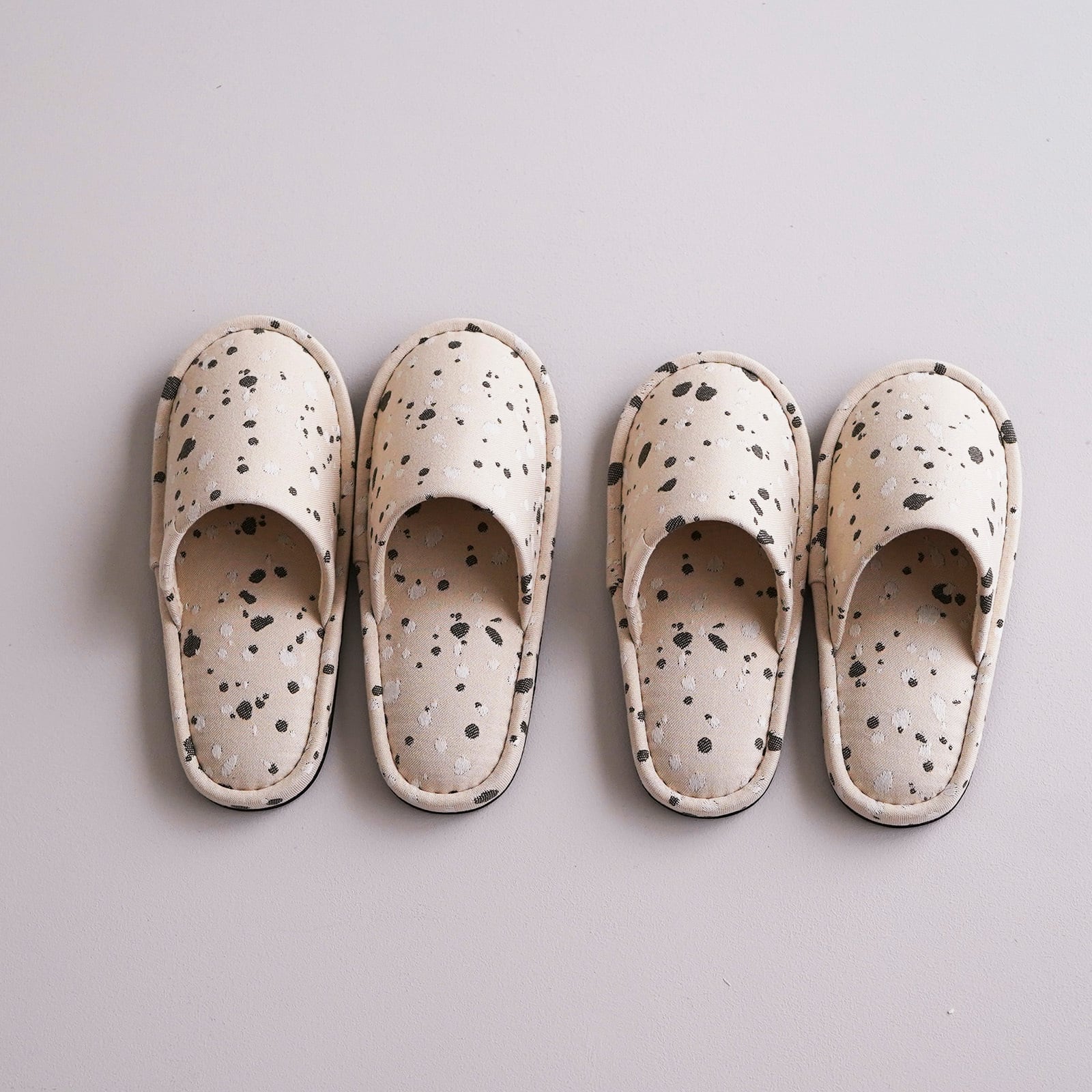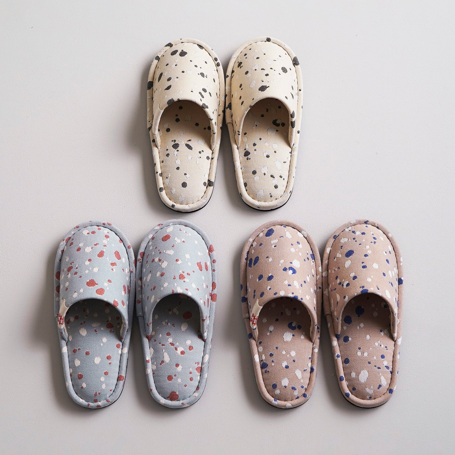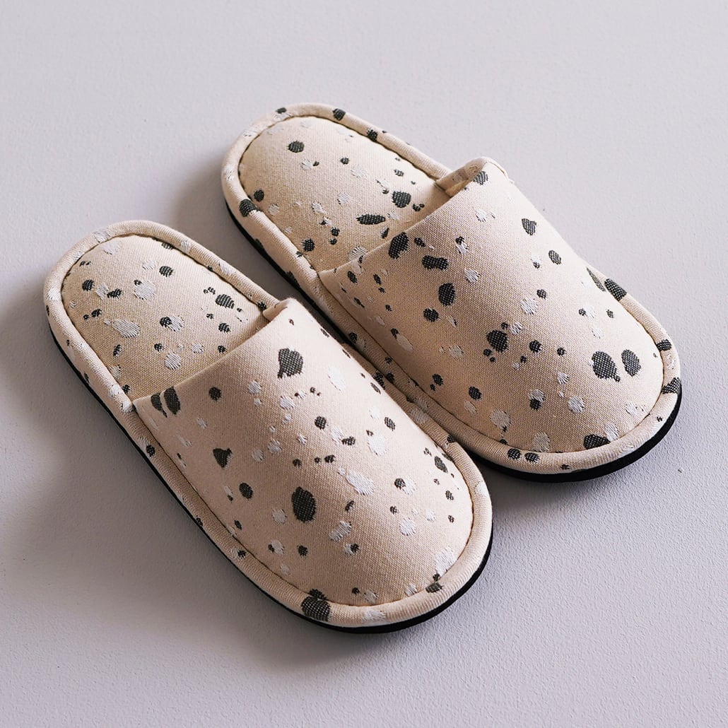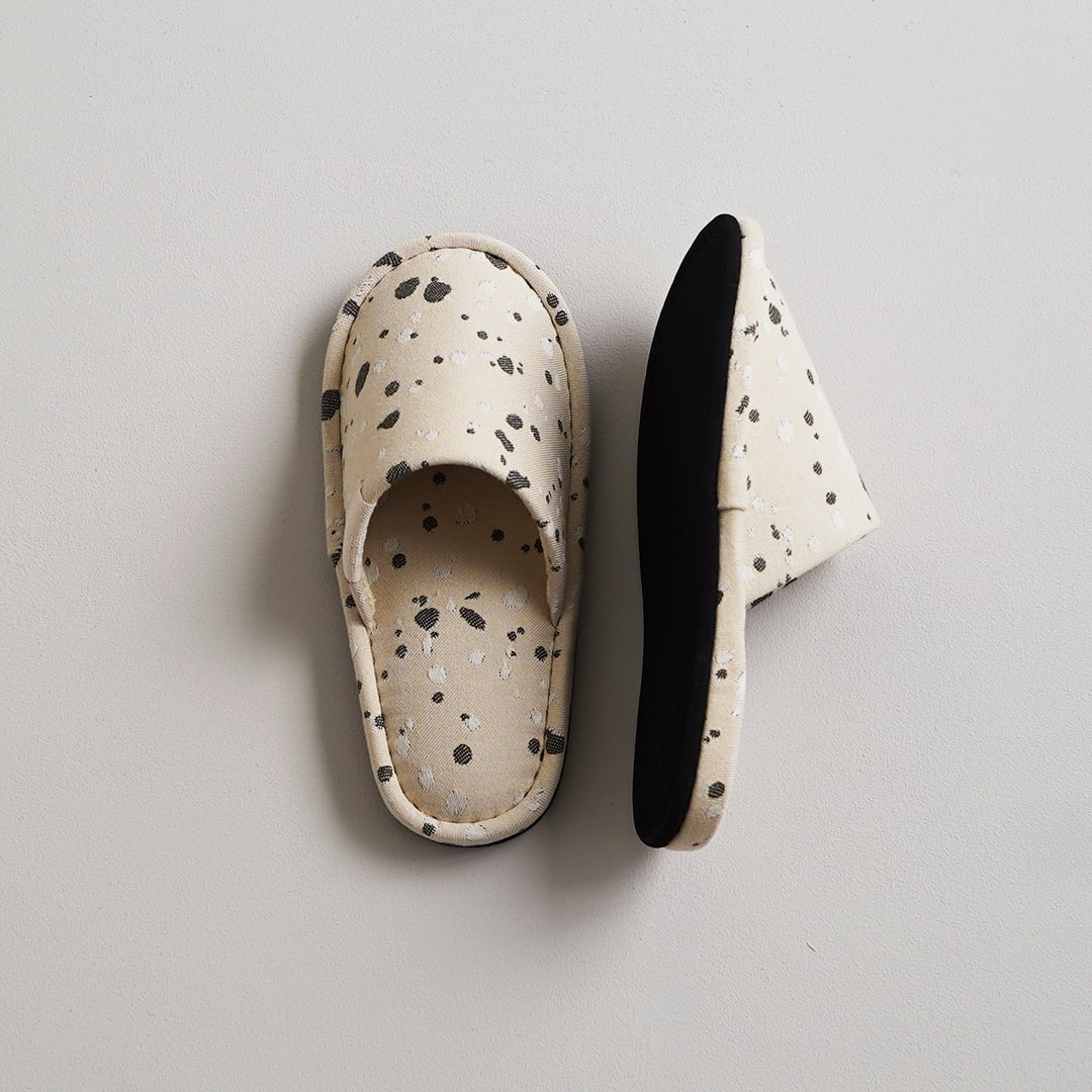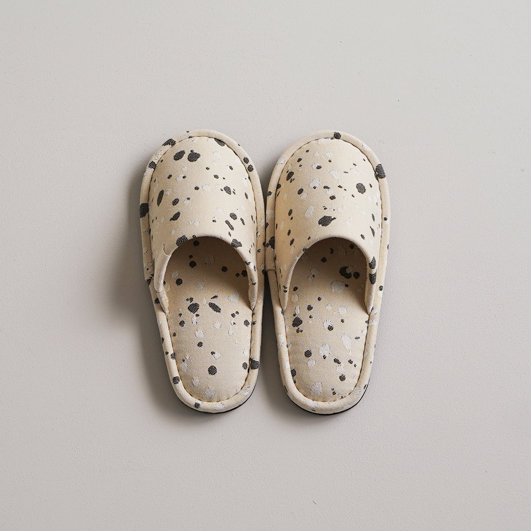 オリジナルファブリック「SHIZUKU」を仕立てたスリッパ。